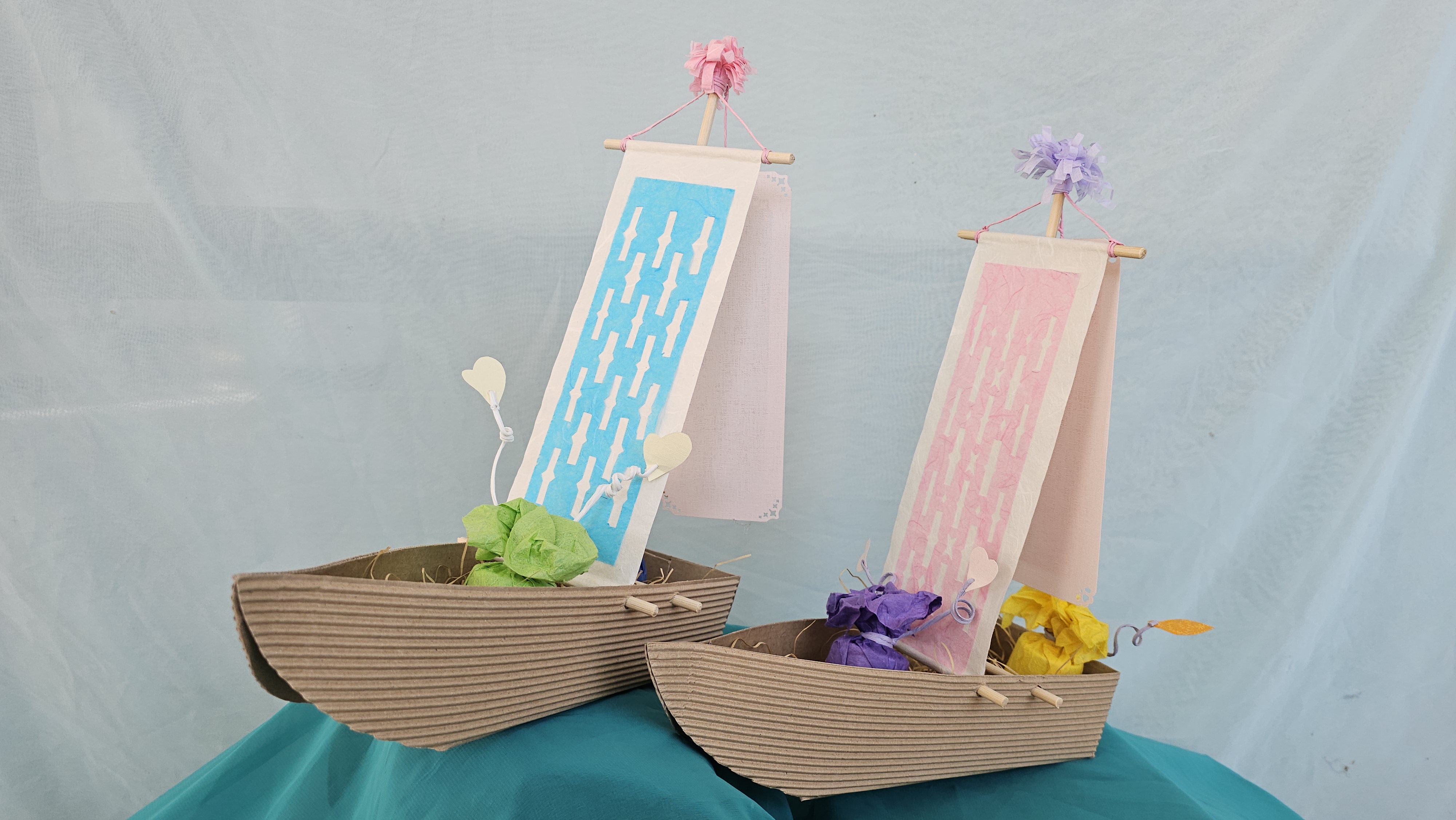 2025년 상설공연 체험으로 올해 새롭게 만들게 된 종이 소망배에, 잊혀 가는 제주 전통배의 이름인 ‘덕판배’를 붙여보았습니다. 아름다운 기메 문양으로 꾸며진 돛이 포인트로, 우리의 소망을 싣고 바람을 타고 거센 파도를 가르며 멀리 나아가는 듯한 모습이 상상 됩니다.